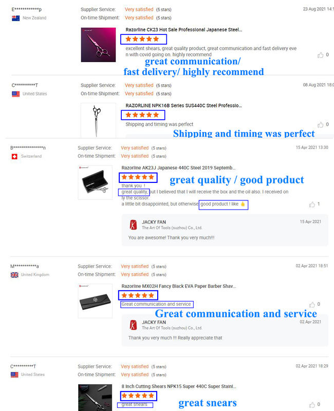 Sac PE, 10PCS par boîte intérieure, 100PCS par CARTON pour ciseaux de coupe de barbe