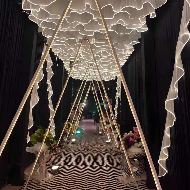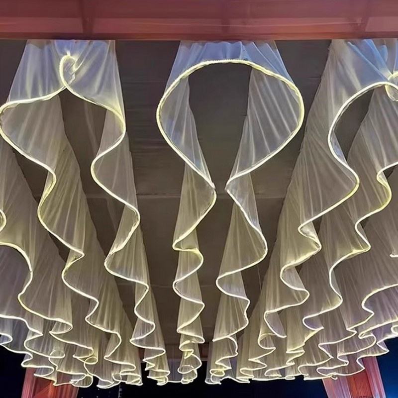 Tissu plafond suspendu rideaux led plafond rideaux décoration mariageNom du produit