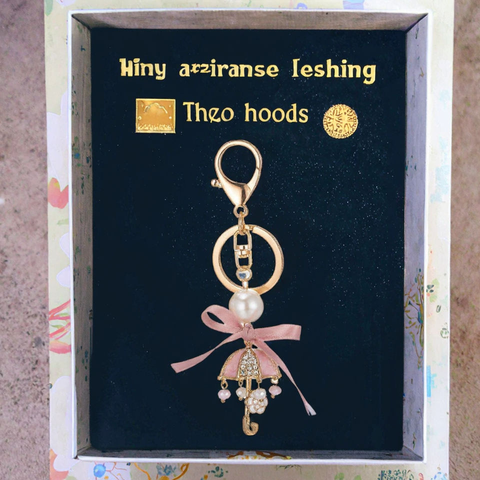 Nouveau porte-clés en forme de parapluie avec nœud en ruban rose, porte-clés en alliage pour sac à main de mode pour filles, ornement suspendu