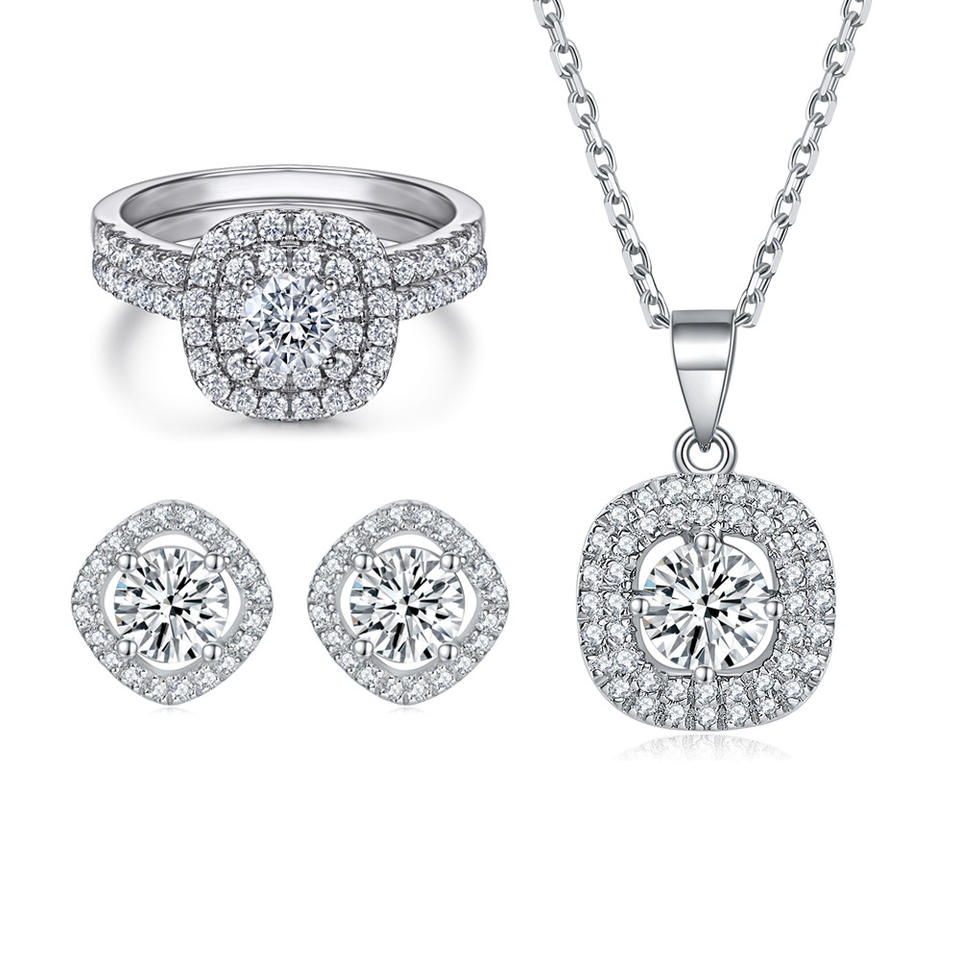 Nouvelle arrivée ensembles de bijoux en forme de rond 925 argent Sterling plaqué or blanc femmes ensemble de bijoux