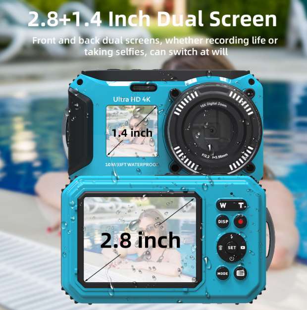 Nouvel appareil photo numérique 4K avec zoom numérique 16x, double écran, étanche, 64MP, avec fonction sous-marine