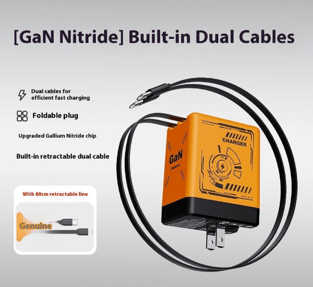 Nouveauté : Chargeur mural 2-en-1 GaN compatible avec charge rapide, charge rapide, câbles rétractables de type C