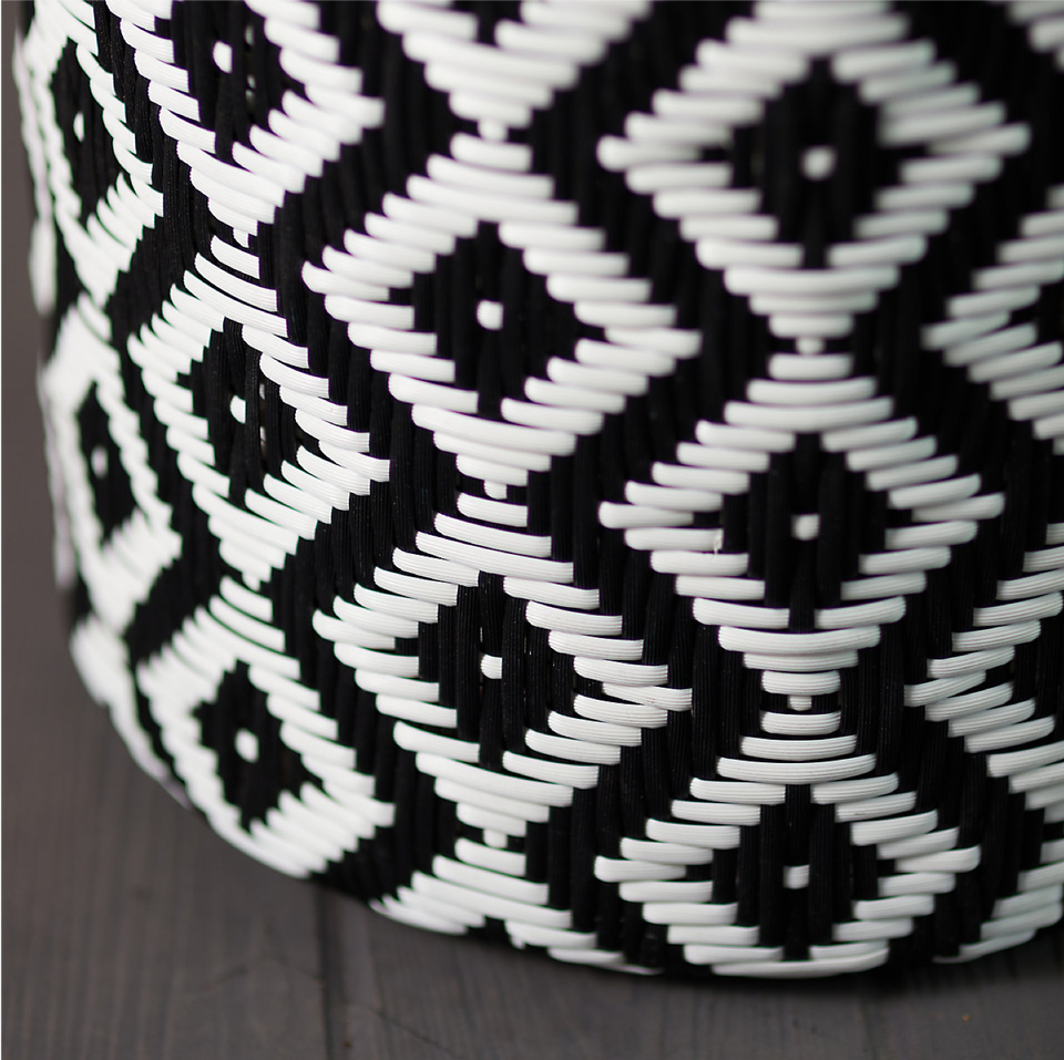 Product name:Black And White Pattern Rattan Stool