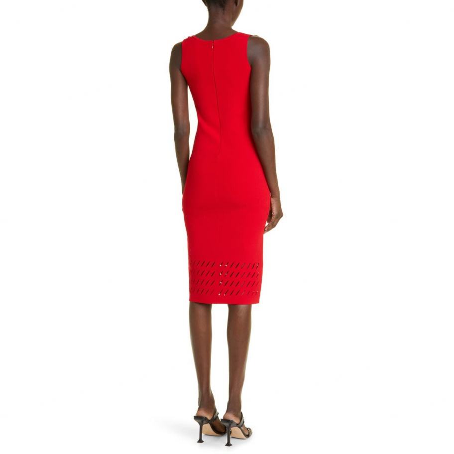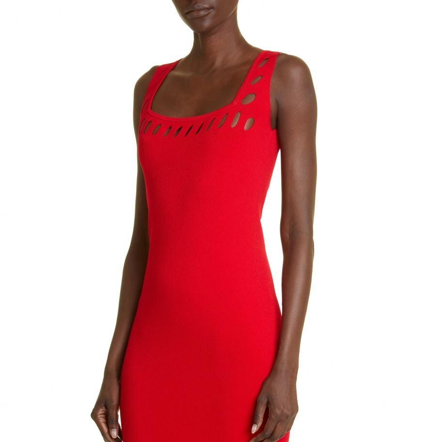 Nouvelle arrivée et design de haute qualité, robe fourreau rouge sans manches en tricot pour femmes