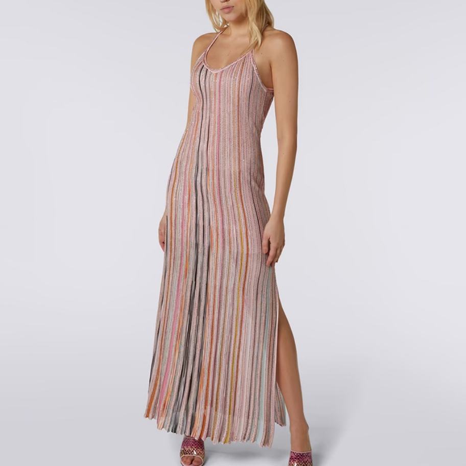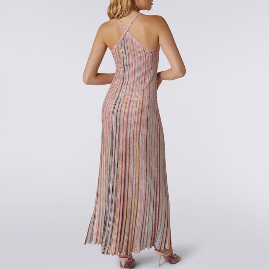Nouvelle robe imprimée rayée pour femme, couleur bonbon, robe en tricot pour femmes