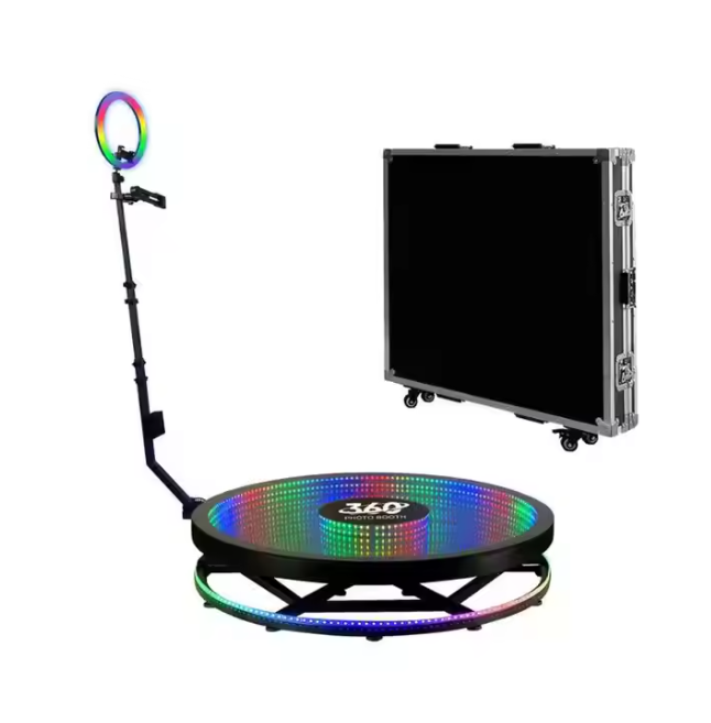 New Automatic 360 Spin Camera Booth 40in Glass Photography Lights Remote Control Extra Batteries Included-360