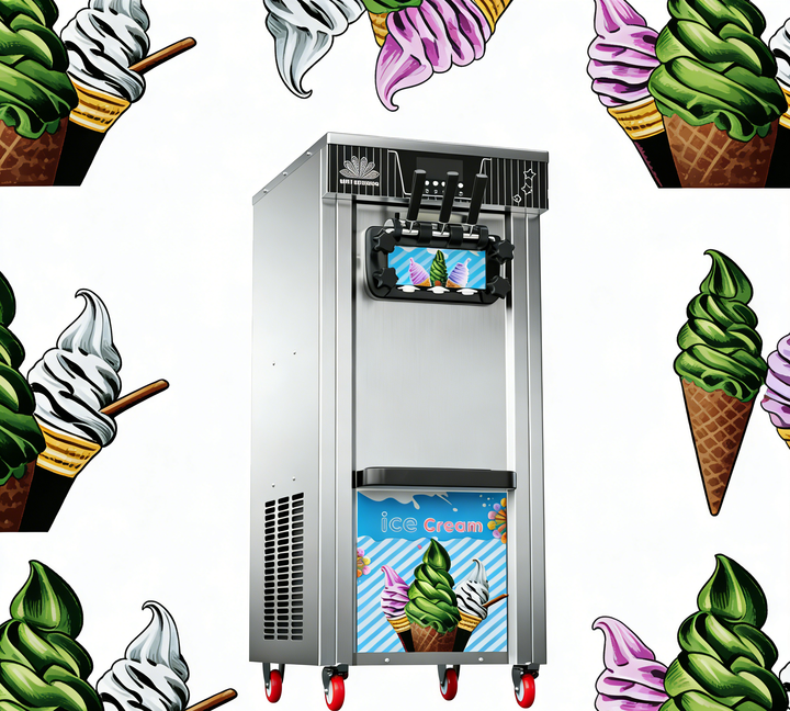 Nouvelle machine à crème glacée molle commerciale verticale automatique 1300W capable de produire trois saveurs de crème glacée simultanément