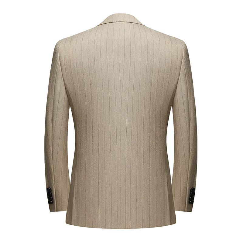 Nouveau costume trois pièces pour homme, version coréenne, coupe slim, rayé, couleur café clair, décontracté, avec deux fentes, tailles M-4XL