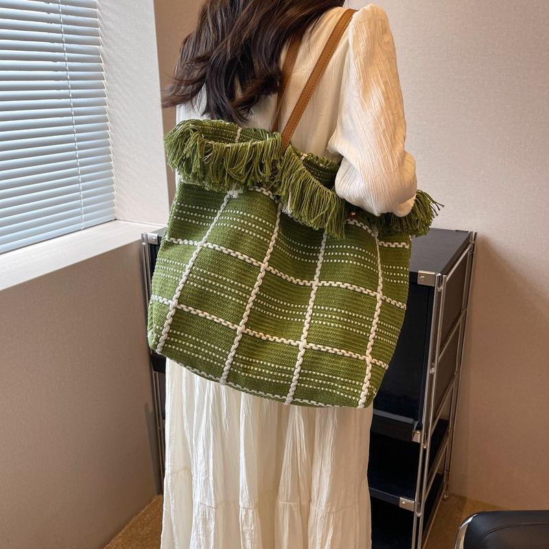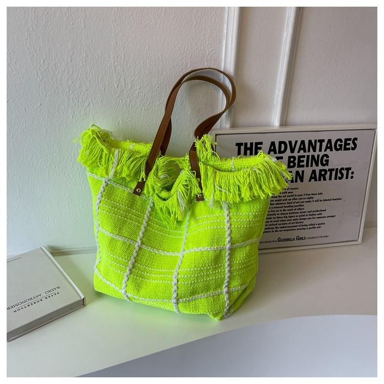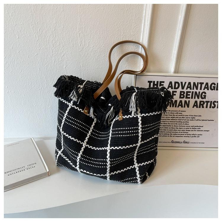 Nouveau sac de plage gland broderie grande capacité toile sac fourre-tout femmes une épaule Shopping sac fourre-tout