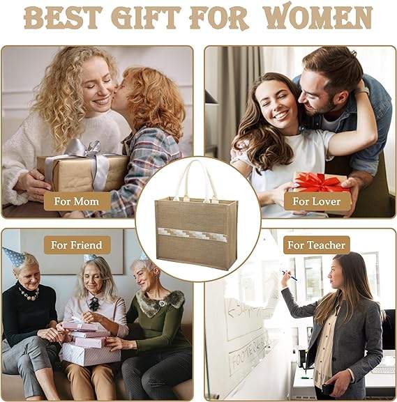 Nouveau sac fourre-tout en toile de jute rayé, grand sac tissé en jute pour femmes, idéal pour la plage, les courses, les mariages, les anniversaires, les remises de diplômes