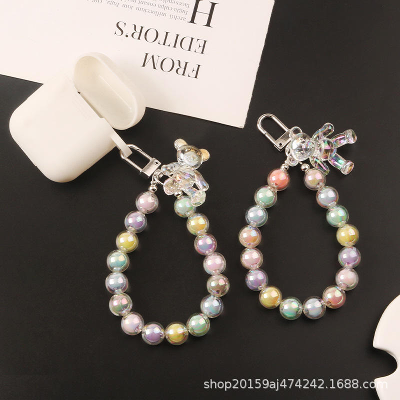 Nouveau ours voiture porte-clés pendentif créatif couleur bonbon perle ronde chaîne clé accessoires étui pour écouteurs sac décoration
