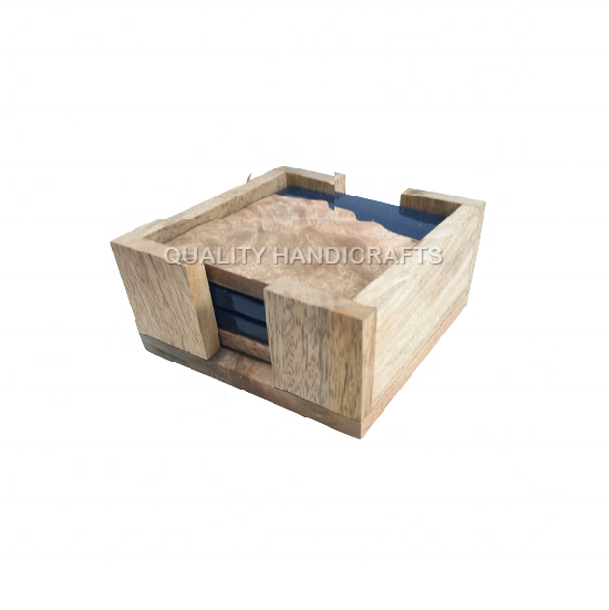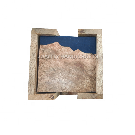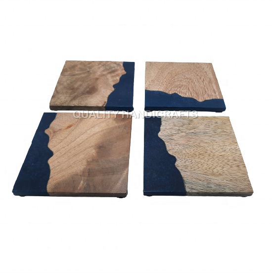 4 pcs set manguier bois et résine Coaster