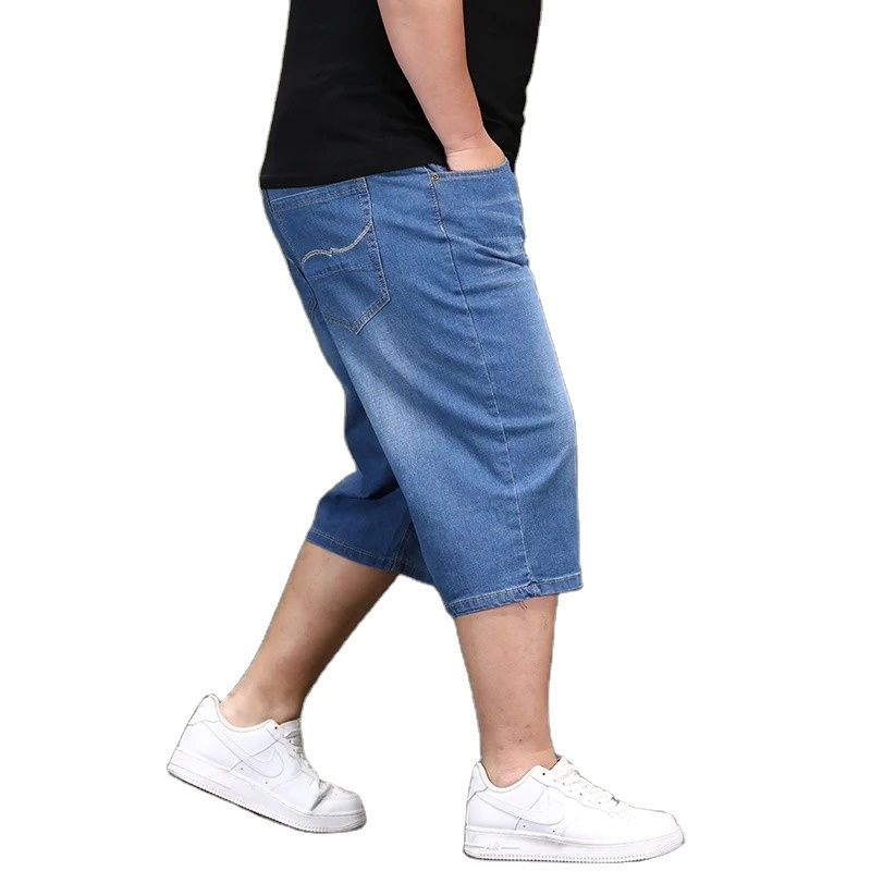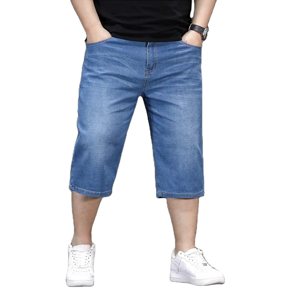 Nouveaux shorts en jean pour hommes, grande taille, longueur longue, coupe ample, extensibles, personnalisés, légers, pour l'été, grande taille, pour hommes corpulents, unisexes