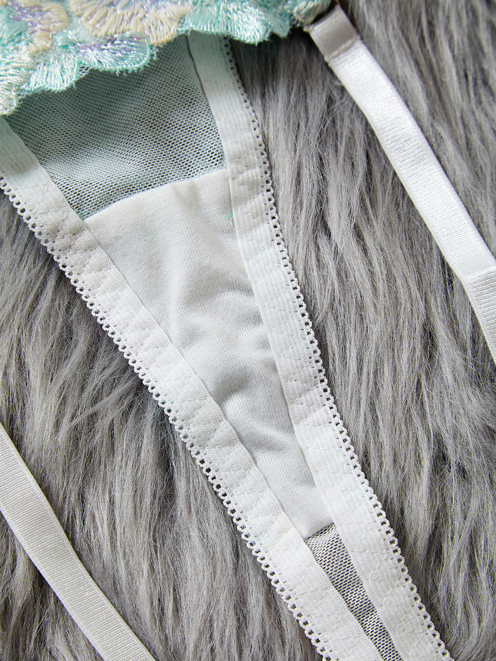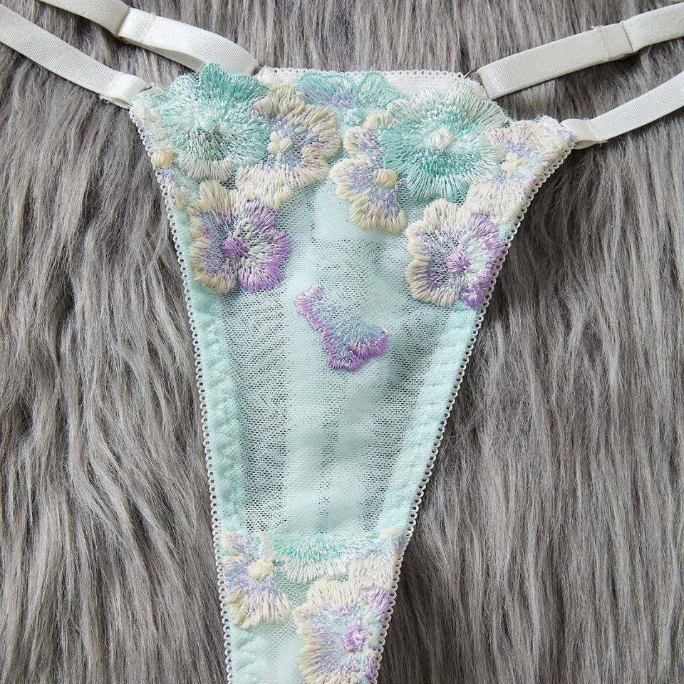 Nouvel ensemble de bikini brodé avec soutien-gorge et string, lingerie sexy en maille respirante, ensemble deux pièces pour femmes