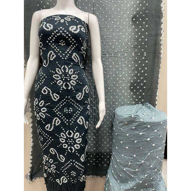 New Black Bandhani Satin A-Line Dress Material Women Knee-Length Casual-Formal Eco-Friendly Washable Embroidered Technics Sweet