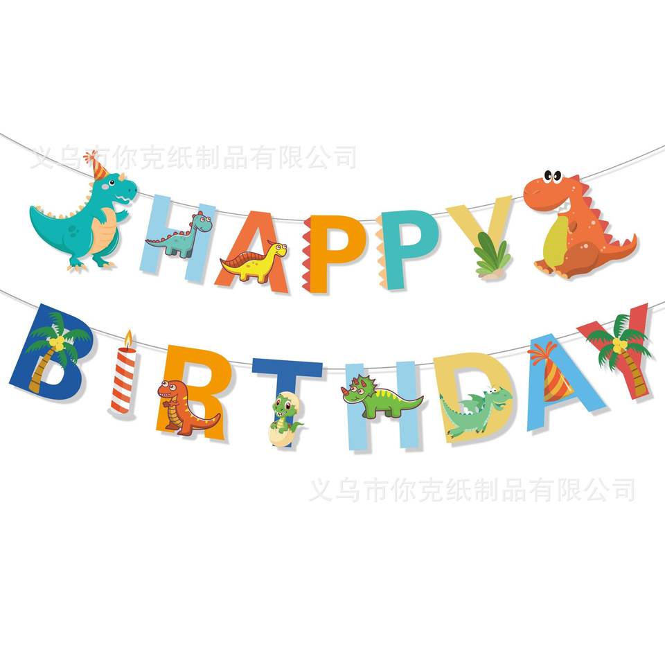 Nouvel ensemble de fête d'anniversaire multicolore de style dessin animé de dinosaure bleu avec gobelets en papier, plateau, nappe pour décorations de vacances