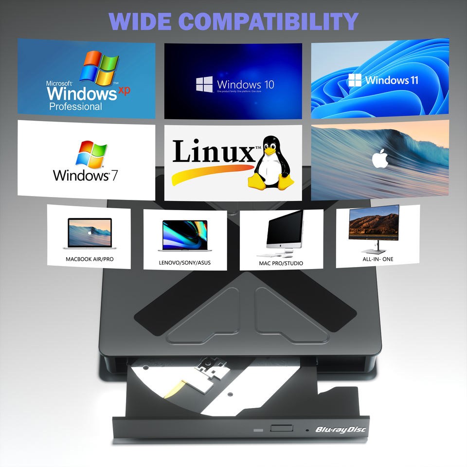 Ne prend pas en charge l'écriture de disques Blu-Ray