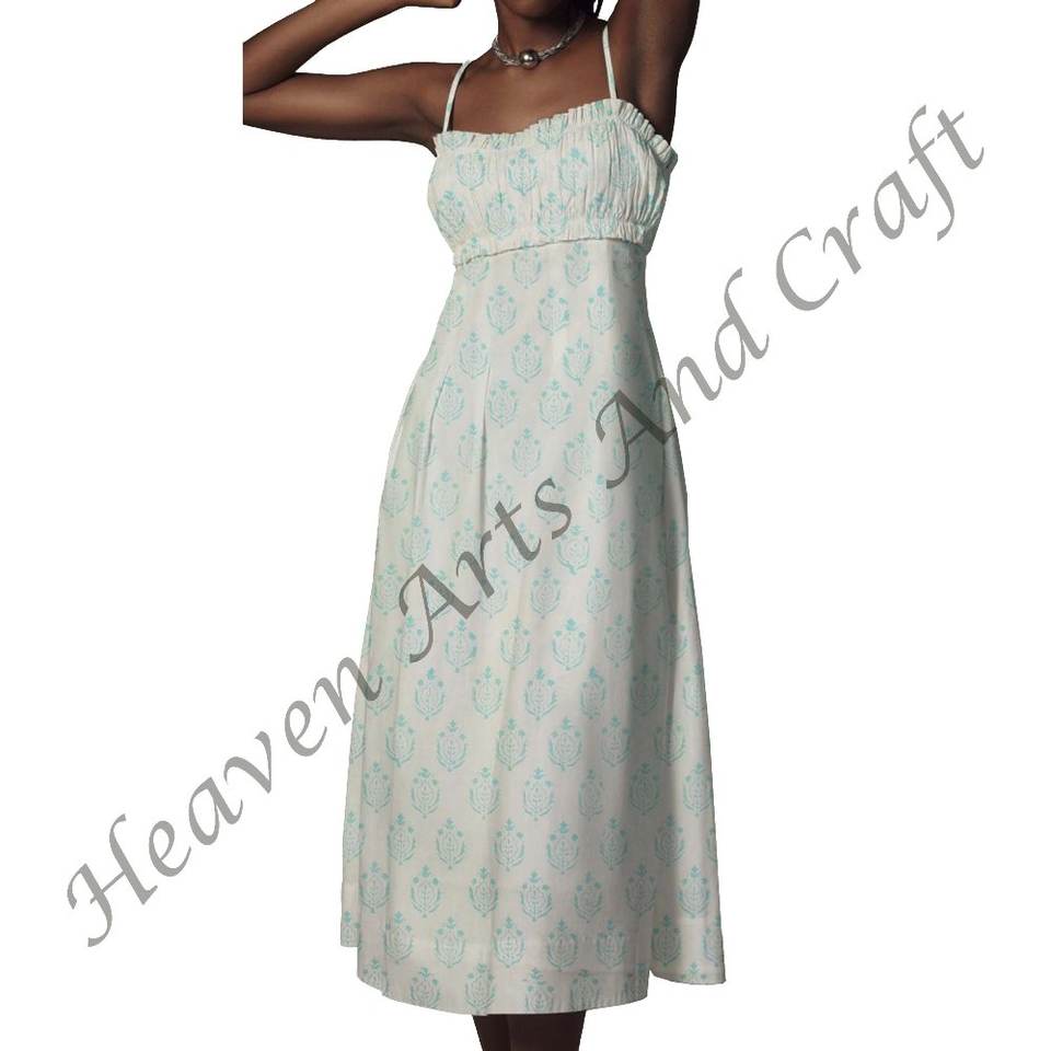 Hand Block Printed Spaghetti Strap Dress