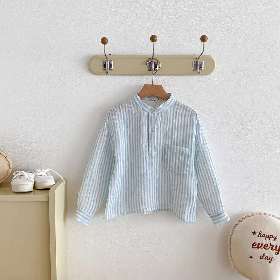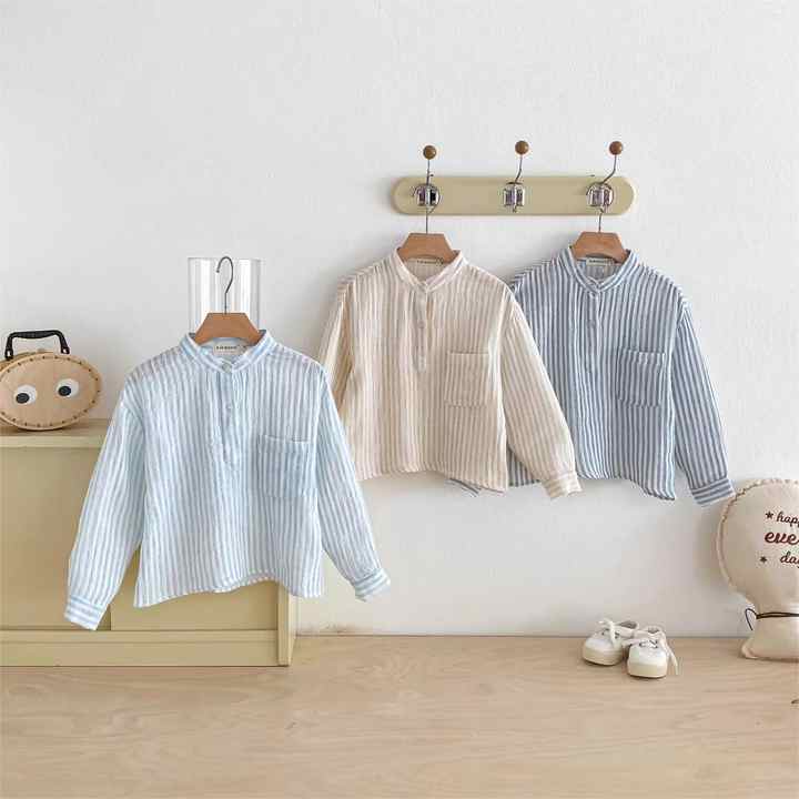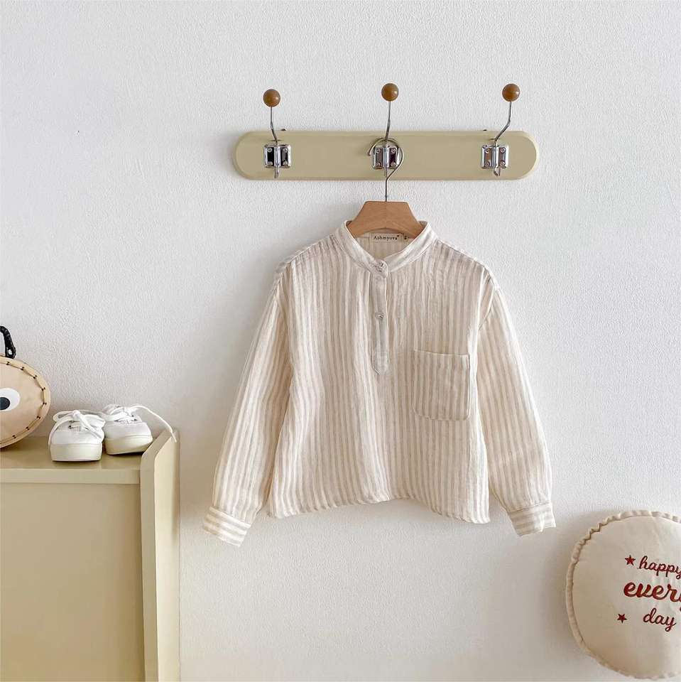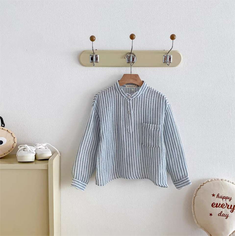 Nouvelle chemise décontractée à manches longues rayée pour garçon, collection printemps-automne, vêtements pour bébés et enfants