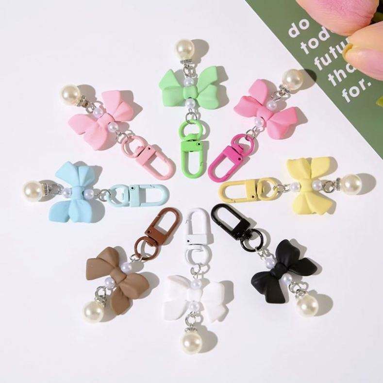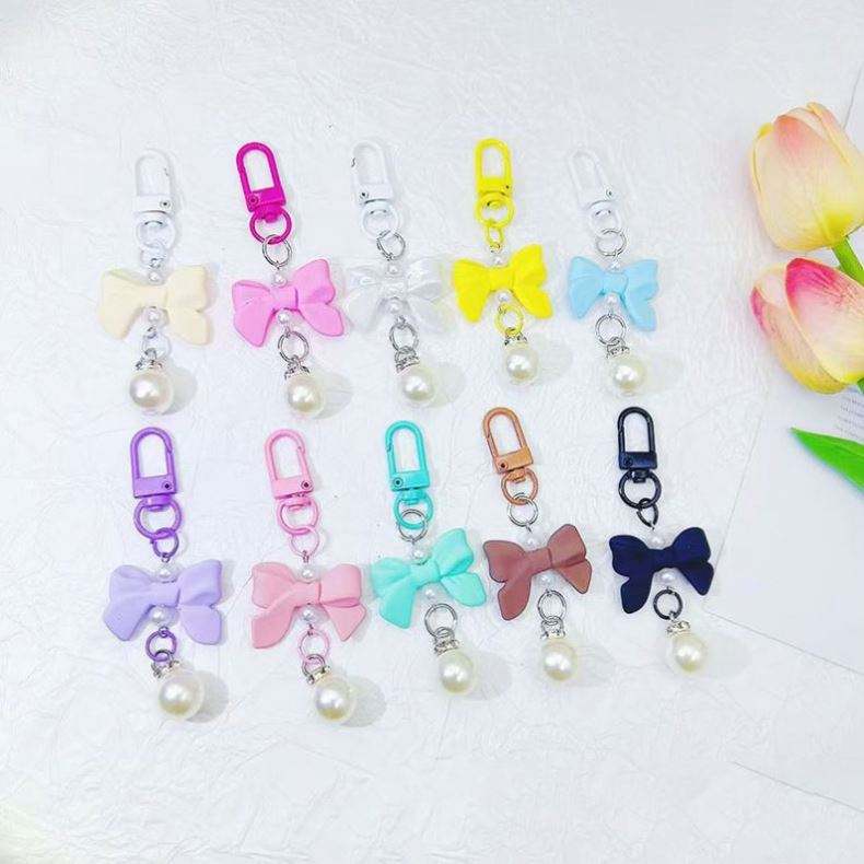 New Bow Candy Color Pendant Keychain PVC Plastic and Metal Mobile Phone Accessories Bag Luggage Accessories