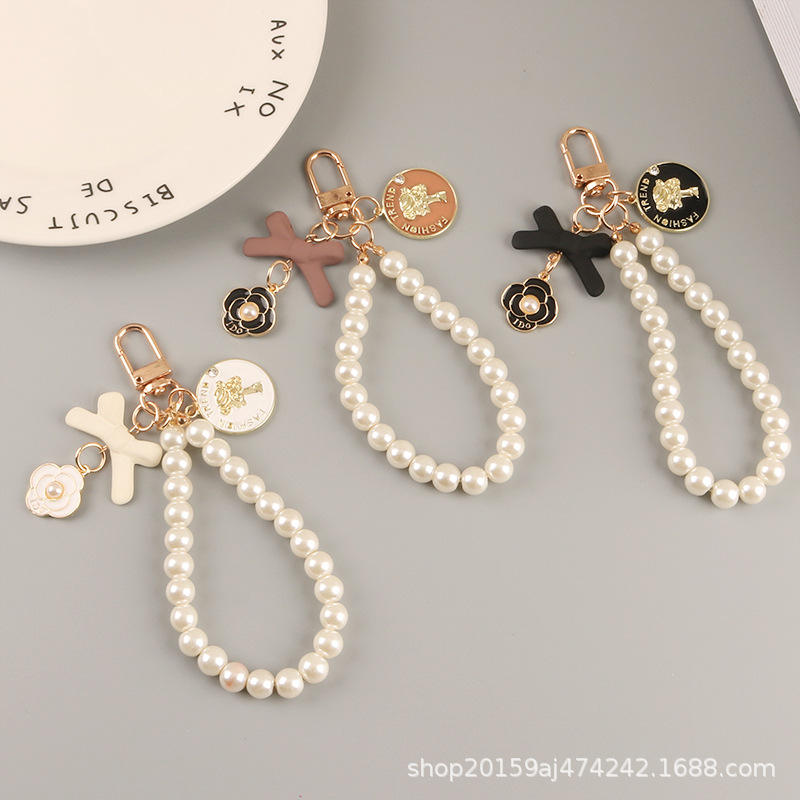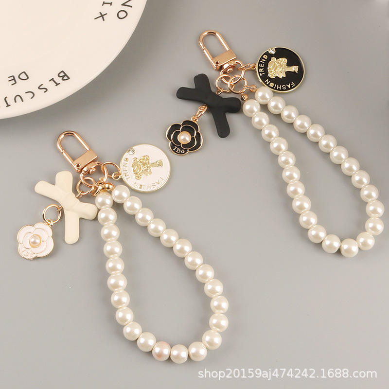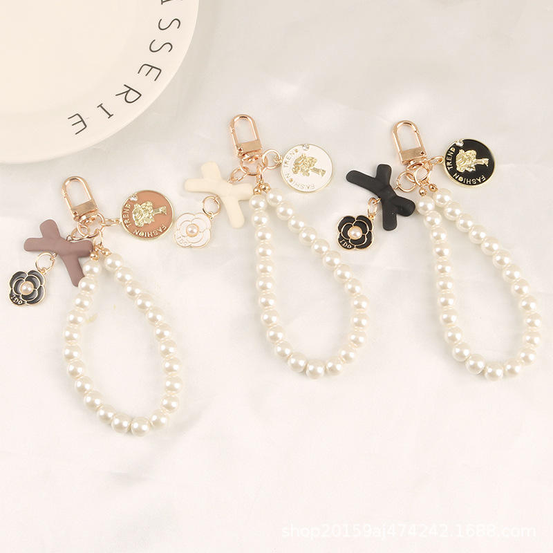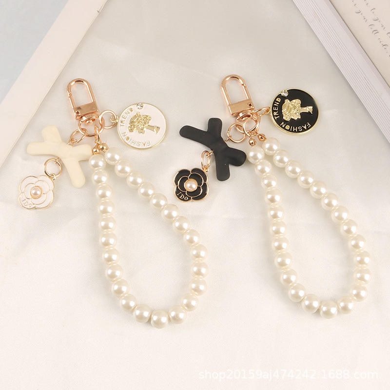 Nouveau porte-clés unisexe avec pendentif nœud, chaîne de perles mignonne, accessoires de sac en métal avec étiquette ronde, décoration de sac