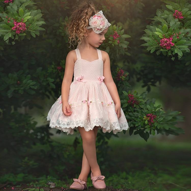 Nom du produit:Robes Tutu d'été à bretelles en dentelle et fleurs, robes personnalisées pour filles