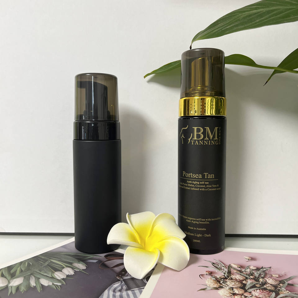 New Brand Self-Tanning Eraser Plastic Foam Pump Bottle 100ml 120ml 200ml Gold Silver Top Foaming Cleanser 100% Plastic Bottles
