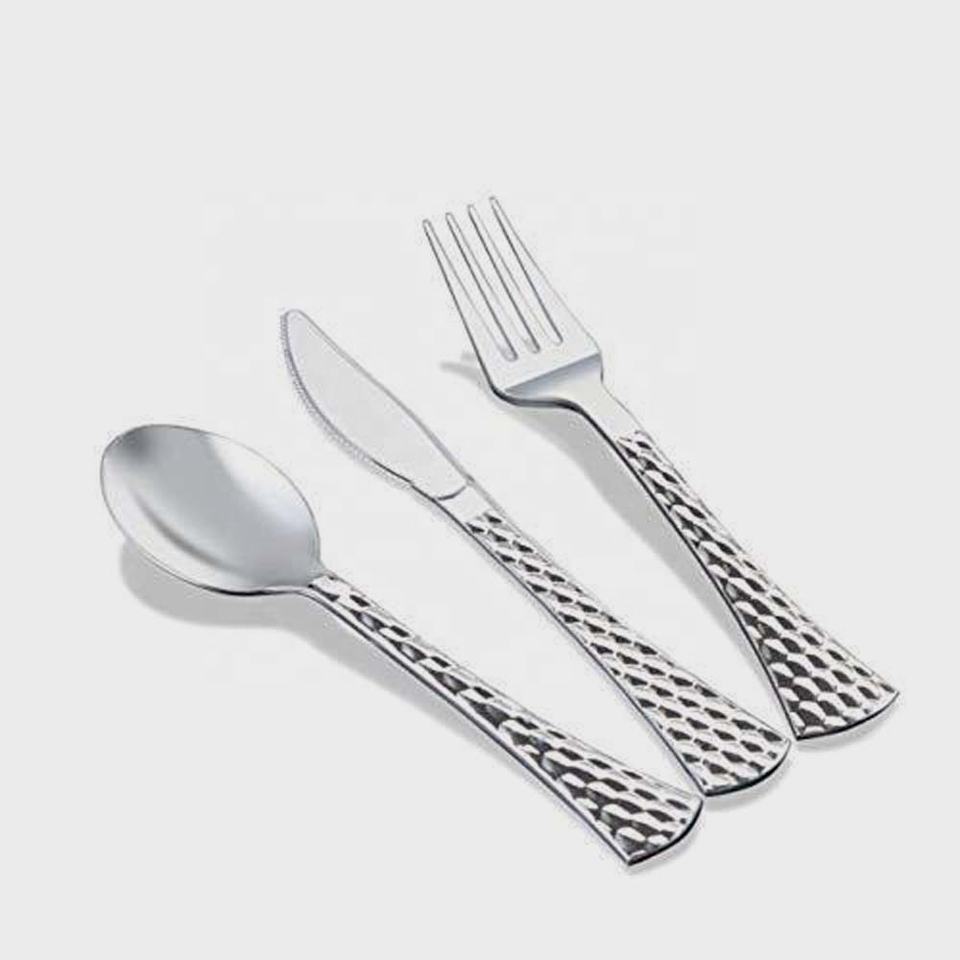 Nouveau métal brillant épais manche rond acier inoxydable Royal argent plaqué argenterie cuillère fourchette et couteau ensemble de couverts