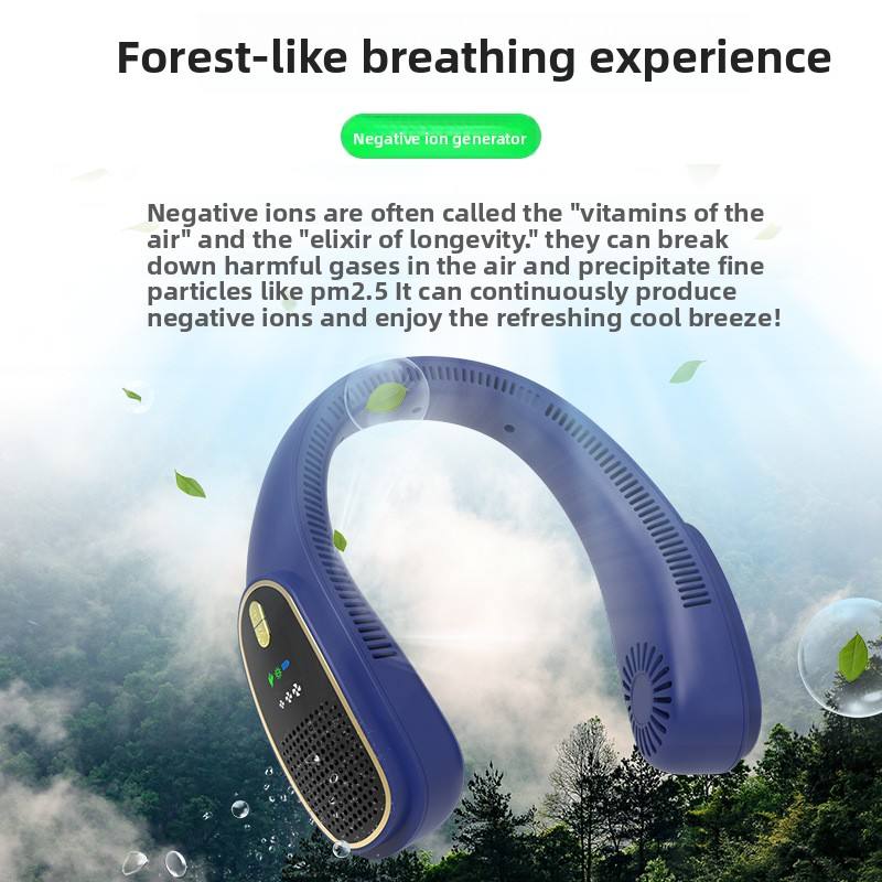 Nouveau ventilateur sans balais à ions négatifs, à porter autour du cou, rechargeable par USB, purificateur d'air sans pales, réfrigération, autonomie de 3 à 6 heures, pour le sport