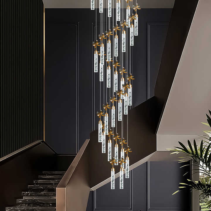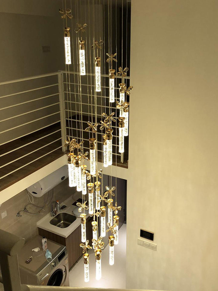 Nouvelle bulle cristal colonne lumière LED luxe Simple Long lustre Villa Duplex salon escaliers lampes rotatives de grande hauteur