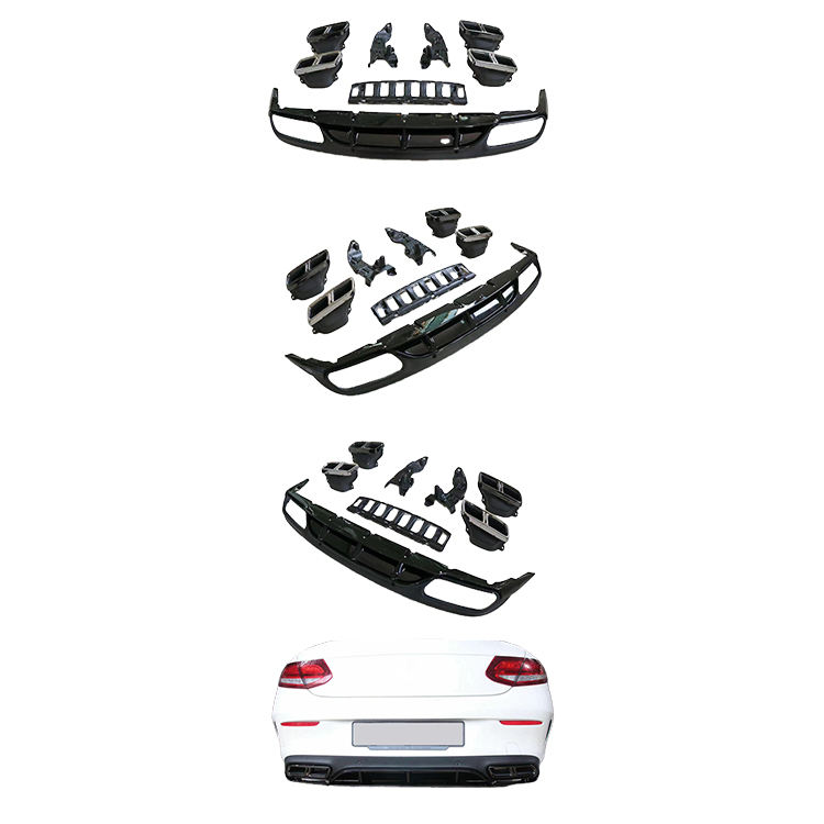 Nouvel arrivage : Diffuseur arrière C63 avec sorties d'échappement aspect noir brillant/carbone pour Mercedes-Benz Classe C C63 W205 Coupé 2015-2018