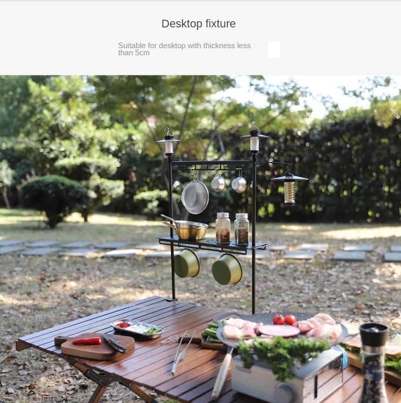 Nouvelle table de camping double étagère multifonctionnelle en alliage d'aluminium support de table pliant léger table de camping en plein air support suspendu