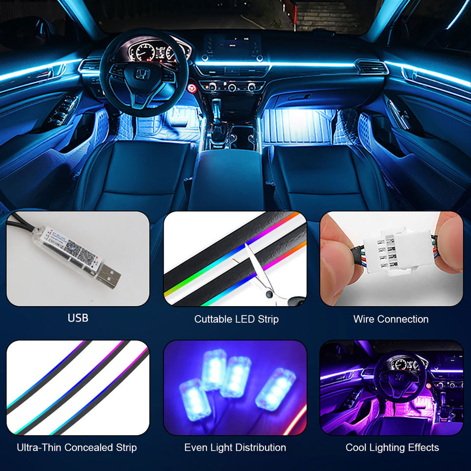 Nouvelle lampe acrylique LED intérieure de voiture charge USB et lumière dynamique fluide pour modification de la lumière ambiante colorée du tableau de bord