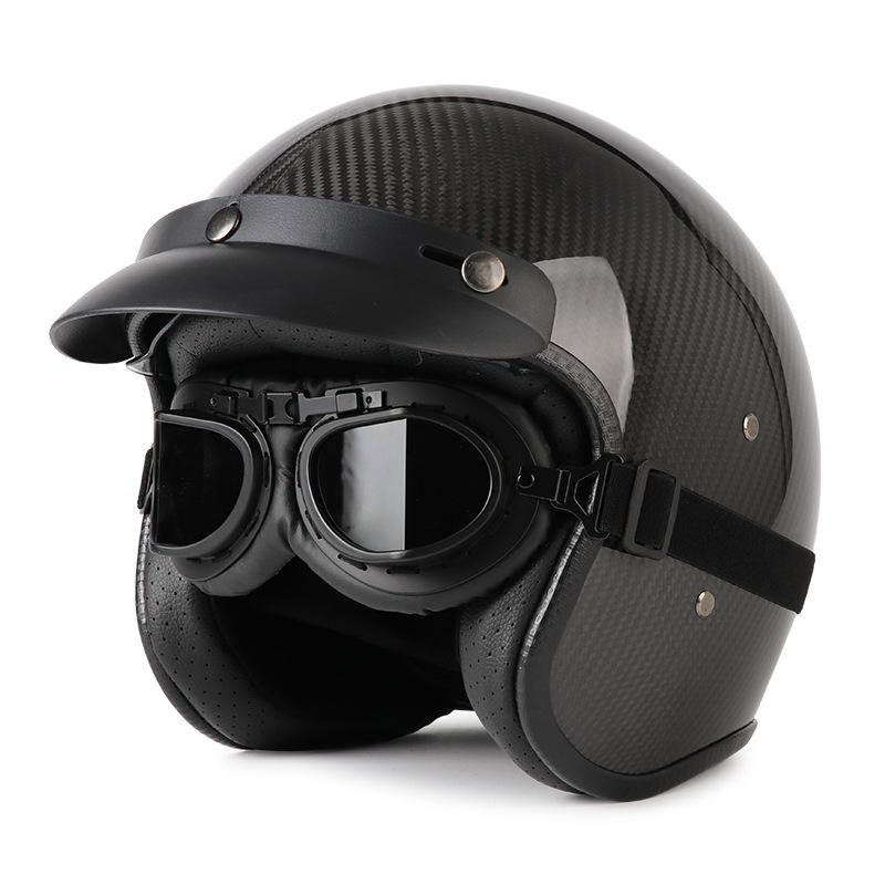 Nouveau casque de moto rétro 3/4 en fibre de carbone avec double visière, ouvert, haute sécurité, adapté aux quatre saisons