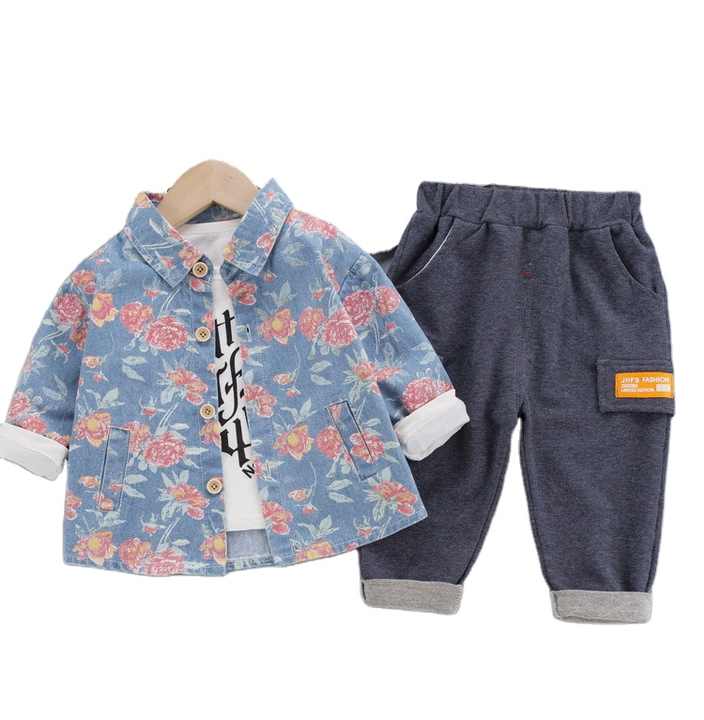 Nouveaux cardigans à manches longues, veste, chemise imprimée, vêtements pour bébé, ensemble trois pièces pour enfants