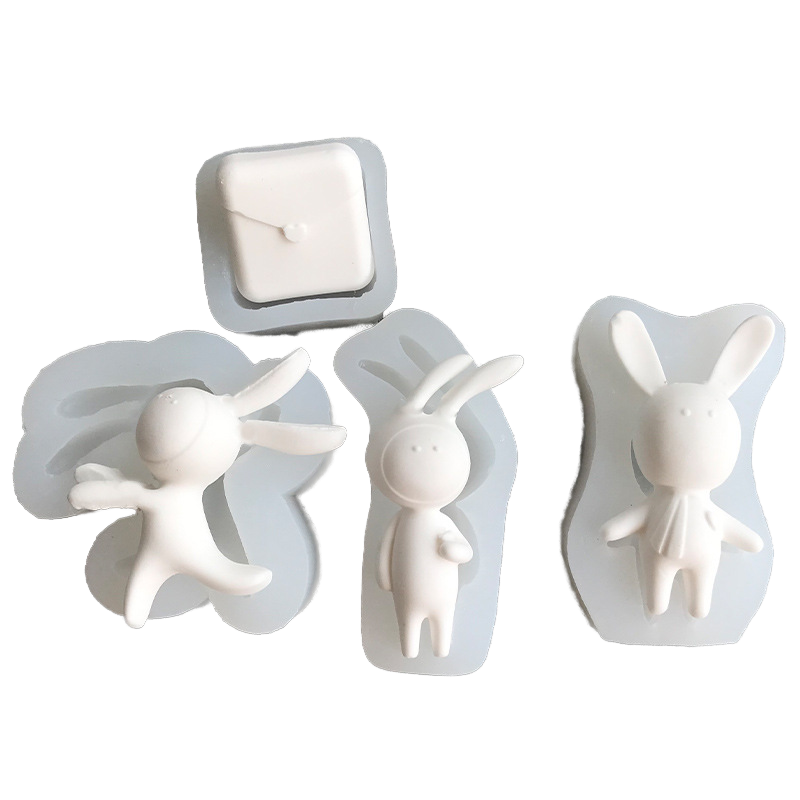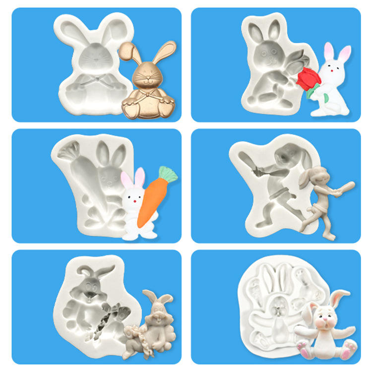 Nouveau moule en silicone Lapin de dessin animé pour résine artisanale, DIY, gâteaux, gel de cristallisation, sucre, gypse, emballage jetable en sachet