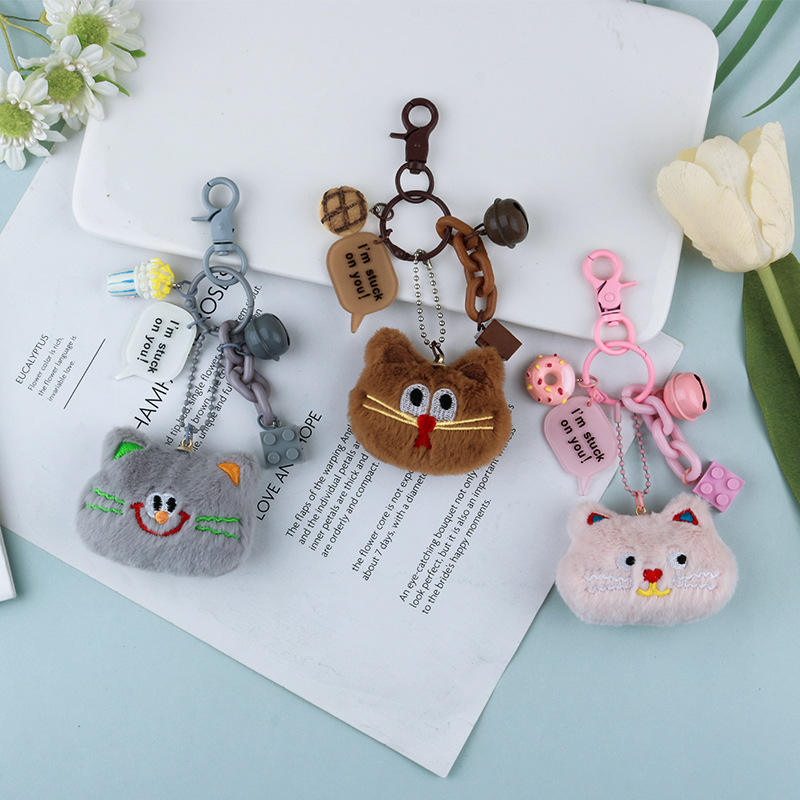 Nouveau dessin animé chaton en peluche pendentif porte-clés petite cloche blocs de construction créatif polyvalent sac mignon décoration