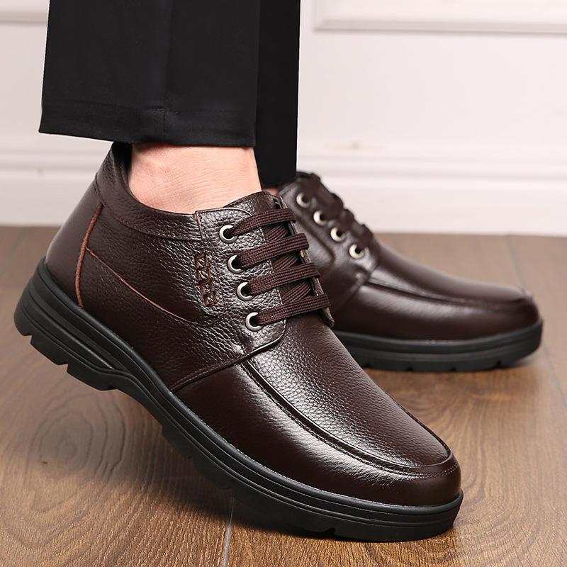 New Casual Leather Shoes Men Business Style Soft Anti-Slip Sole Wear-Resistant Toe Formal Footwear Mesh Upper Waterproof