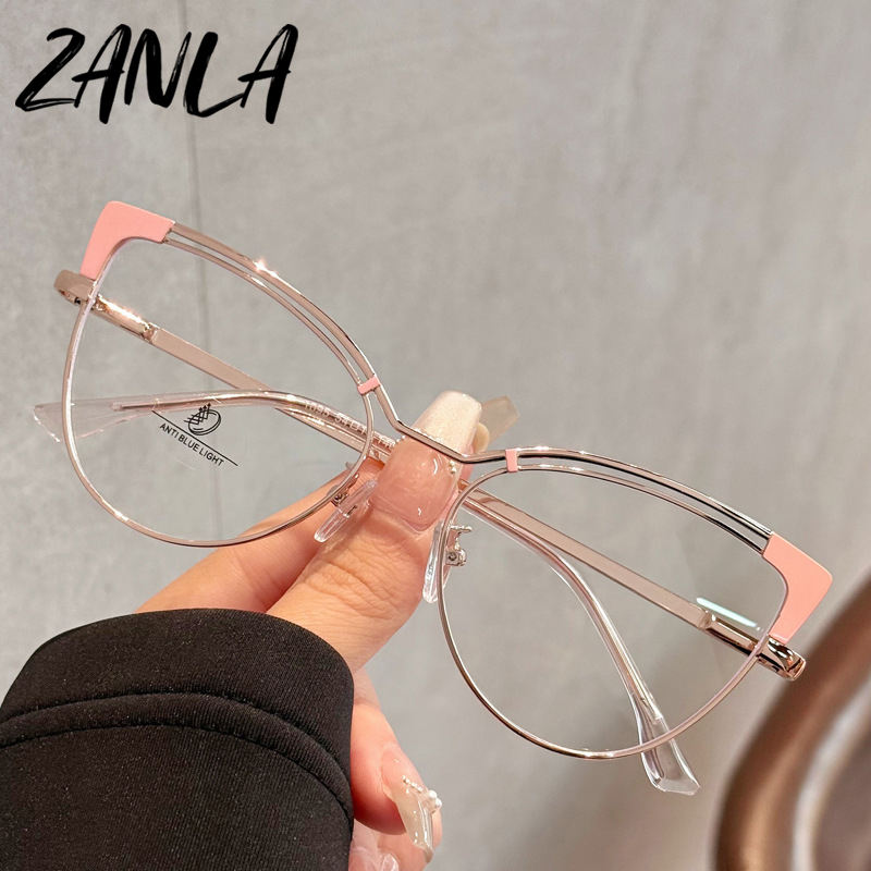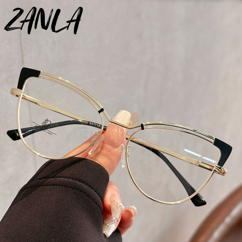 Nouveau oeil de chat métal Anti lumière bleue lunettes cadre changement de couleur lunettes plates pour femmes myopie visage uni peut être jumelé lunettes