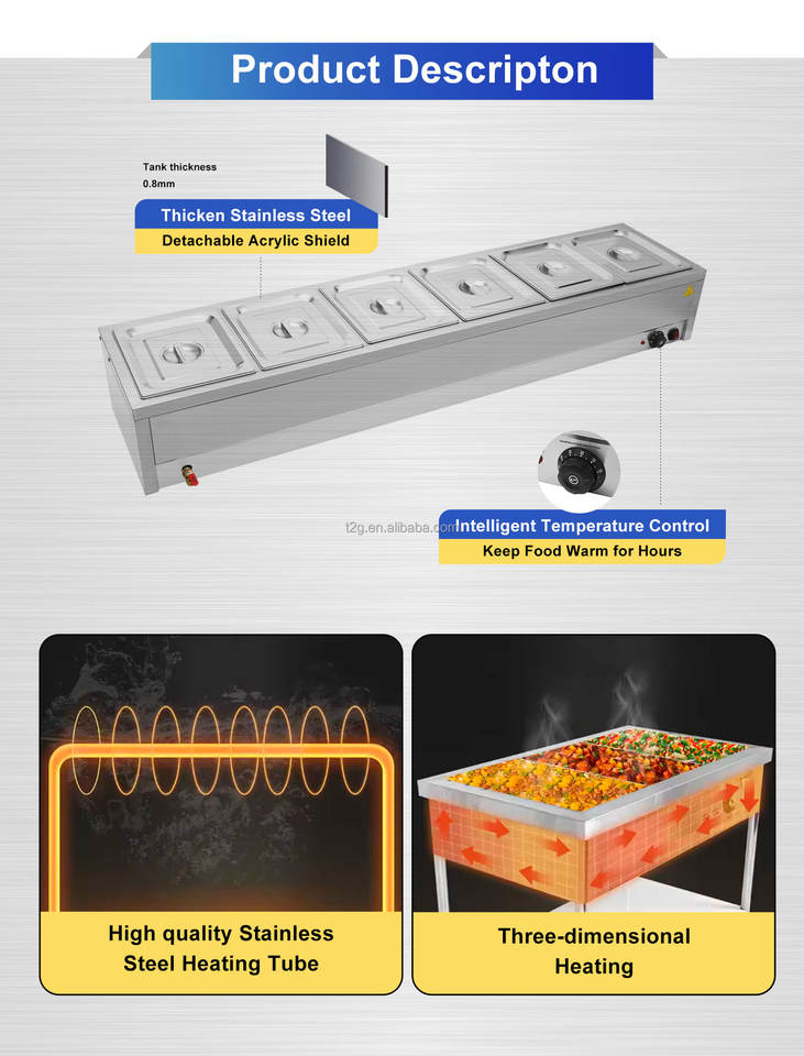New Catering Equipment Buffet Commercial Stainless Steel Electric Bain Marie Steam Table Food Warmer 50 Trays/Hour Energy Saving