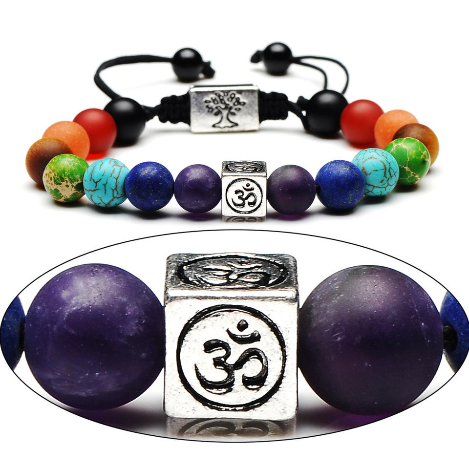 Nouveau bracelet ajustable avec symboles des chakras, 7 chakras, pierre naturelle, cordon fait à la main, charme arbre de vie, bracelet tressé