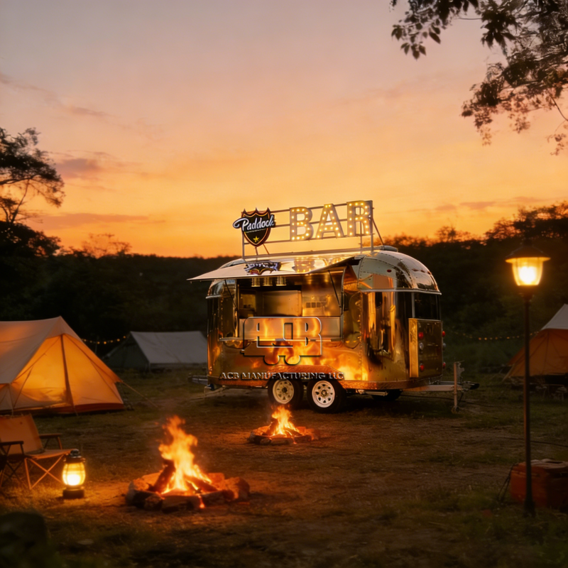 Nouvelle remorque de camion de cuisine mobile entièrement équipée en acier inoxydable et aluminium, économique, avec station de pizzas et de snacks pour utilisation en extérieur