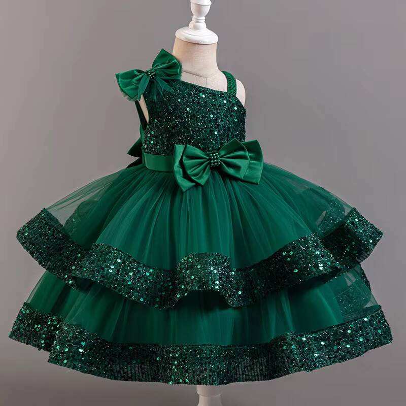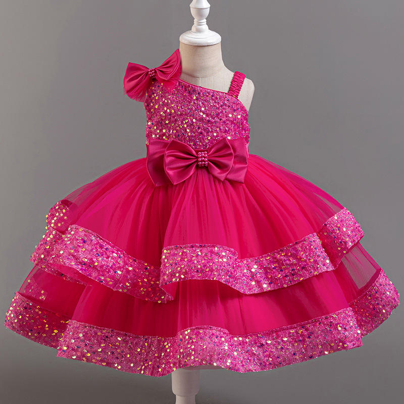 Nouvelle robe de princesse pour enfants, style moelleux, paillettes, maille, anniversaire et première année, banquet, performance