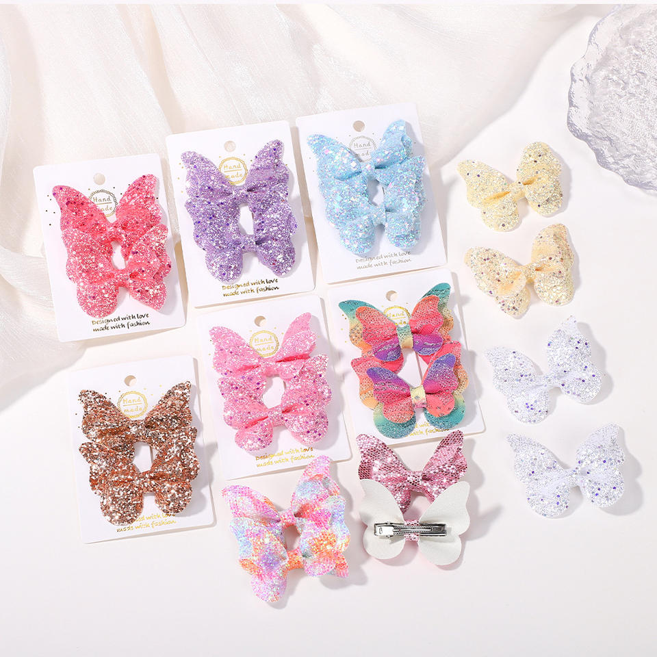 Nouvelle épingle à cheveux en acétate scintillante en forme de papillon tridimensionnel pour enfants, pince à cheveux dégradée, accessoire pour cheveux de bébé, modèle 4017, 5*3,5 cm