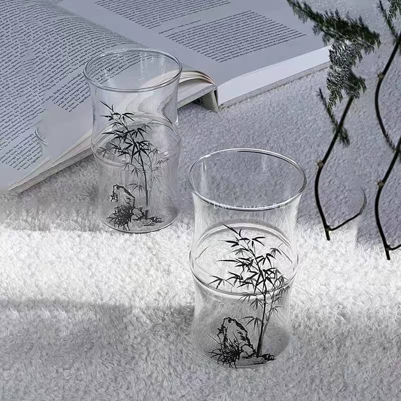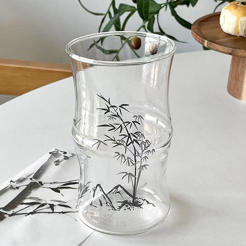 Nouvelle tasse à thé en verre à motif de bambou style peinture à l'encre chinoise, écologique, capacité 420 ml, design antique, esthétique haut de gamme