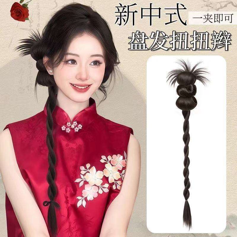 Nouvel accessoire de coiffure tressé de style chinois, postiche queue de cheval torsadée à clipser pour femme, postiche de style ancien