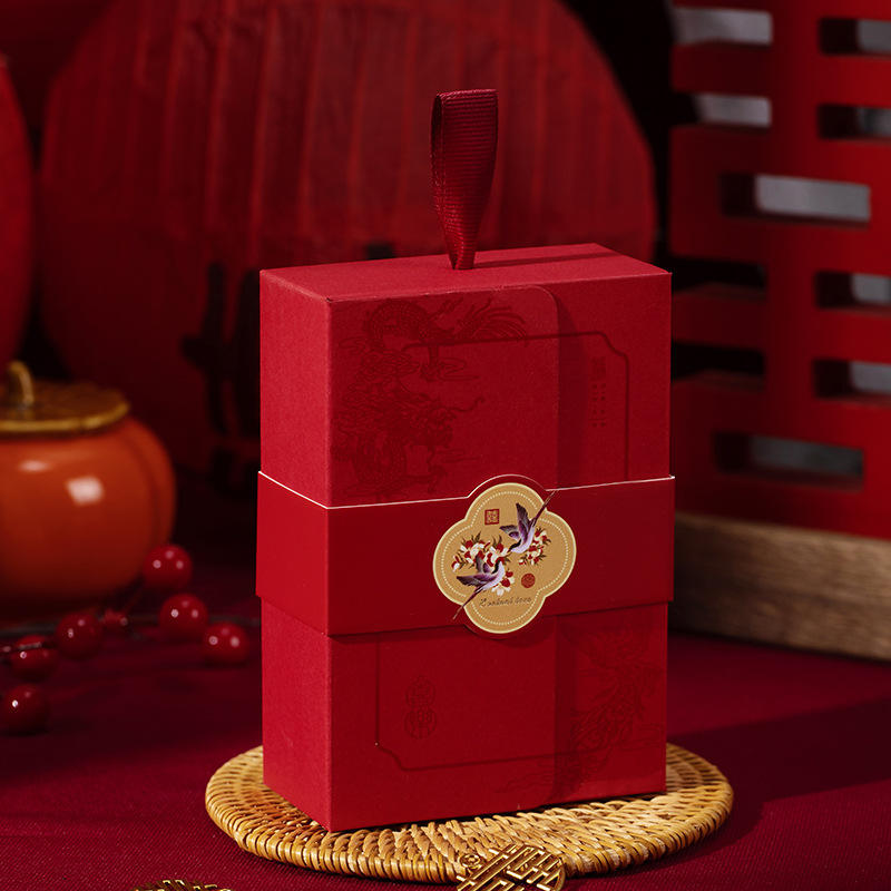 Nouveau Style chinois personnalisé boîte-cadeau de mariage Portable chinois marée Style boîte à bonbons Dragon Phoenix pie emballage en or chaud