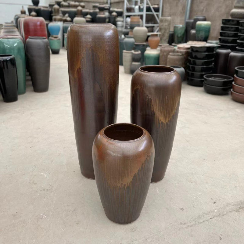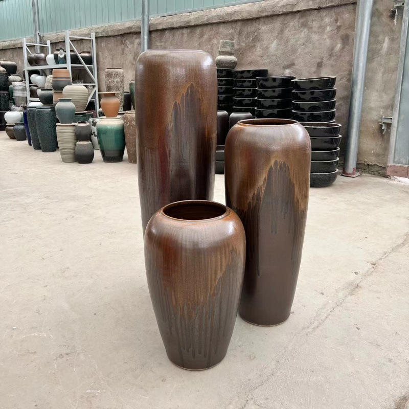 Nouveau Style chinois fait à la main au sol debout grande taille Vase à fleurs Pot en faïence Restaurant hôtel Villa paysage pot en céramique