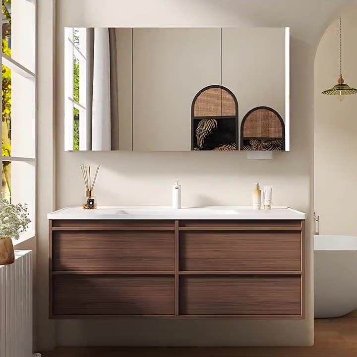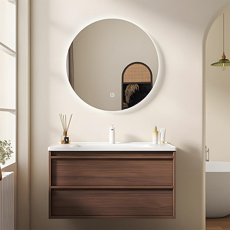 New Chinese Walnut Ceramic Integrated Basin Bathroom Cabinet Bathroom Bone Line Washing Table Wash Basin Wash Basin Cabinet