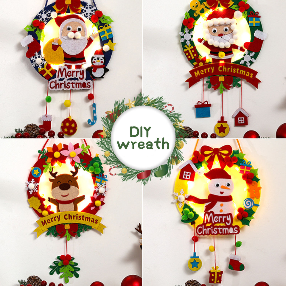 New Christmas Wreath with Lights Children Handmade Diy Creative Christmas Pendant Kindergarten Decoration